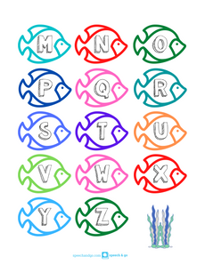 For alphabet practice: Encourage your child to say the letters out loud. You might have them think of a word that begins with the letter they've caught. Your child can also practice matching lowercase to uppercase letters! Print out page 4 of the alphabet packet and cut out the squares. Fold each square in half and put them all in a cup or hat. Have your child pull out squares at random and "fish" for the corresponding uppercase letter.