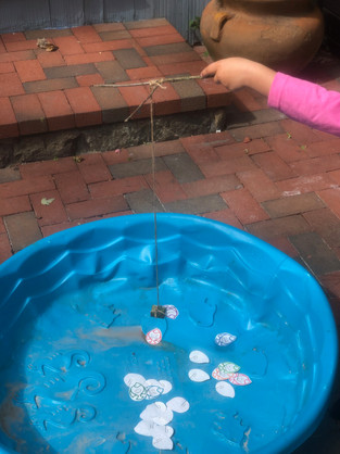 Clip a paperclip to each fish or attach by poking a hole through the paper. Place the "fish" in an empty (dry) water table or kiddie pool. Or, simply scatter them on the floor!