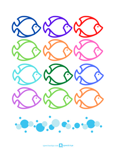 For numbers practice: Encourage your child to say each number and count the dots out loud. Optional - set up 10 cups and label each one with a number 1 through 10. Have your child "catch" a fish, count the dots, say the number aloud, and then place it in the matching cup!