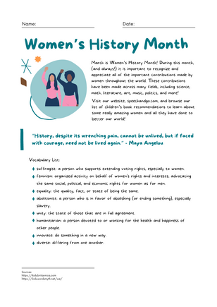 March is Women's History Month! Browse several great children's books to learn about and celebrate amazing women in history below. Scroll to the bottom to download worksheets that can be used to supplement any of these books. Or, use them to open up a discussion about the progress women have made and reflect on what still needs to be done. What ideas can your little one(s) come up with?